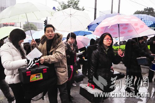 按照要求,8點(diǎn)45分以后考生不準(zhǔn)再進(jìn)入考場(chǎng)。但記者在現(xiàn)場(chǎng)看到,不斷有考生手提畫(huà)箱,肩背畫(huà)板,冒雨沖向考點(diǎn),無(wú)奈,他們被禁止入場(chǎng)。來(lái)自荊州外國(guó)語(yǔ)學(xué)校的三名同學(xué)告訴記者,為了方便參加外省院校的美術(shù)考試,老師讓他們統(tǒng)一在漢口楊汊湖考場(chǎng)外租房。昨日上午7點(diǎn)出門(mén)時(shí),大家都攔不到的士,無(wú)奈只能坐公汽到武昌趕考,由于天氣不好,路上堵車(chē)嚴(yán)重,等他們到達(dá)考點(diǎn)時(shí),已經(jīng)遲到了40多分鐘。