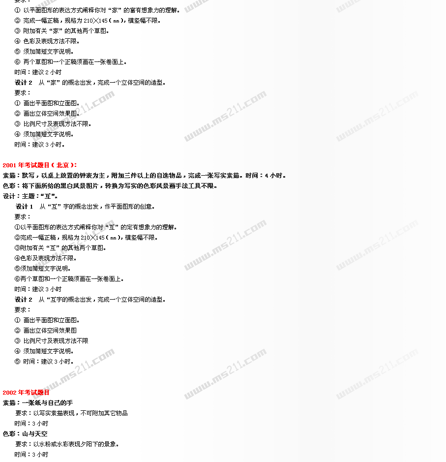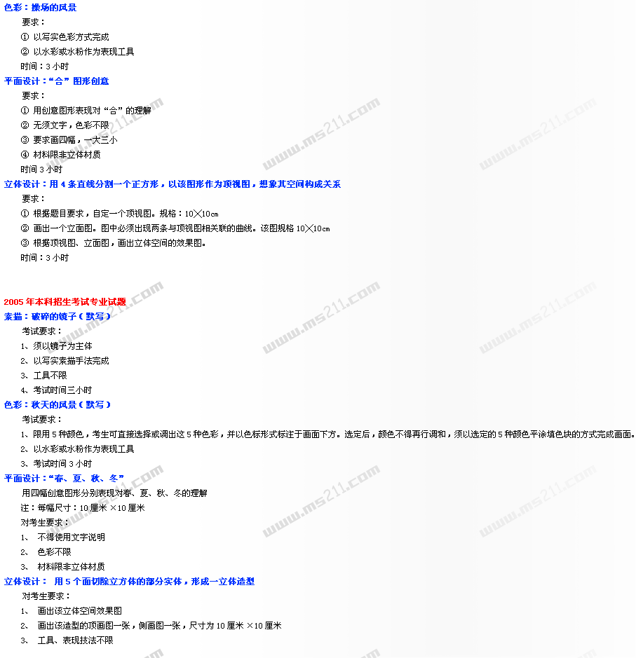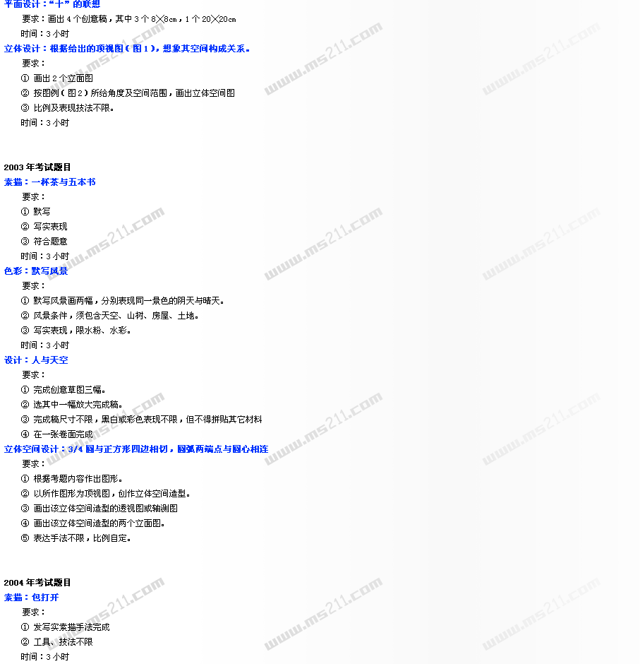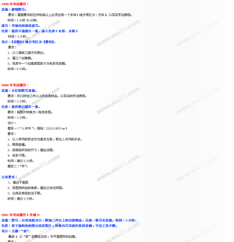1999-2005年中央美術(shù)學(xué)院美術(shù)高考專業(yè)考題