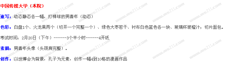 2010年中國(guó)傳媒大學(xué)美術(shù)高考專業(yè)考題