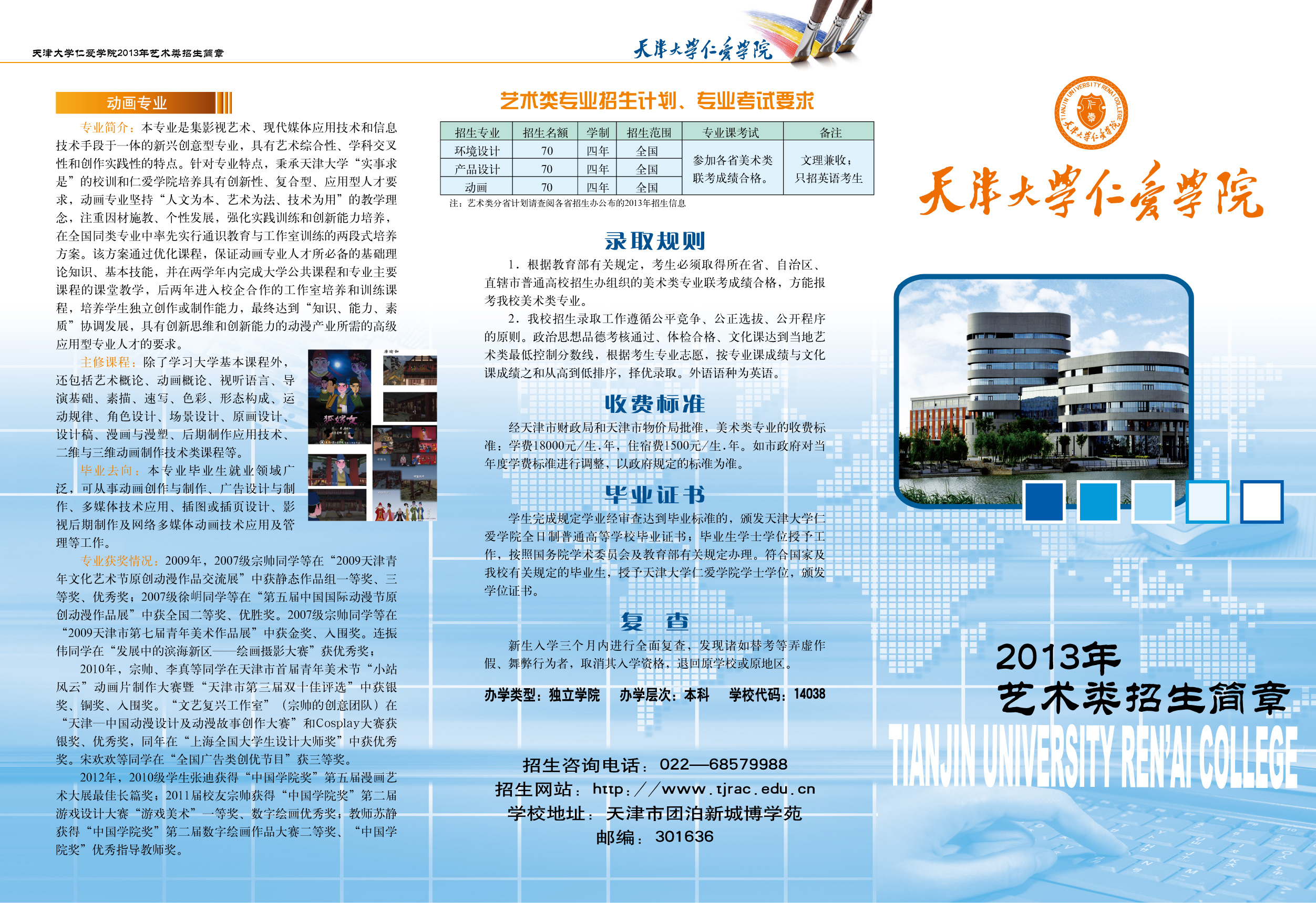 天津大學(xué)仁愛學(xué)院2013年藝術(shù)類招生簡章