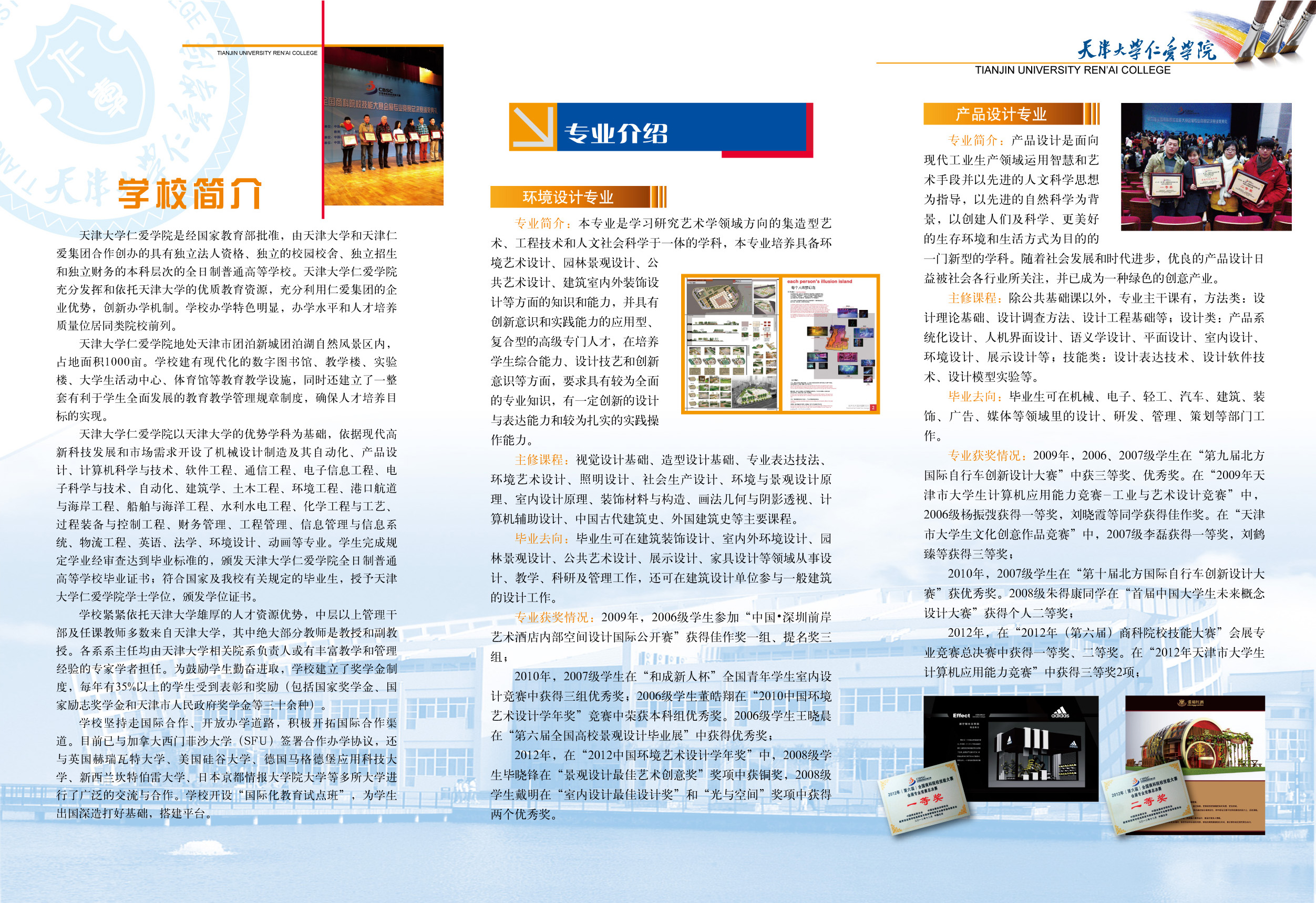 2010年,2007級學(xué)生在“和成新人杯”全國青年學(xué)生室內(nèi)設(shè)計競賽中獲得三組優(yōu)秀獎;2006級學(xué)生董皓翔在“2010中國環(huán)境藝術(shù)設(shè)計學(xué)年獎” 競賽中榮獲本科組優(yōu)秀獎。2006級學(xué)生王曉晨在“第六屆全國高校景觀設(shè)計畢業(yè)展”中獲得優(yōu)秀獎;