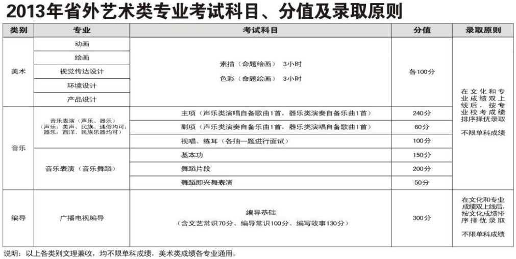 成都學(xué)院(成都大學(xué))2013年省外藝術(shù)類(?迹╀浫≡瓌t
