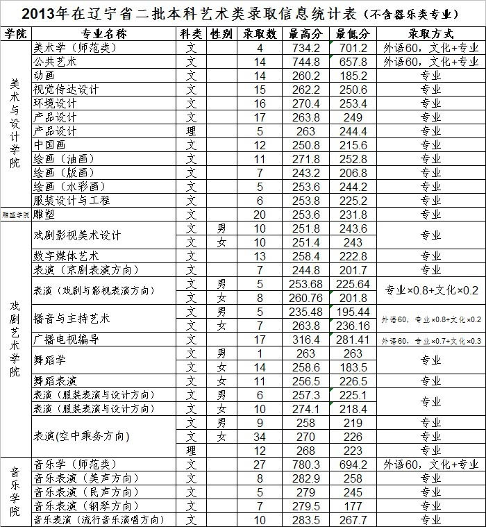 2013年沈陽師范大學(xué)美術(shù)高考錄取分?jǐn)?shù)線(遼寧省)