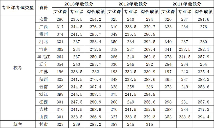 2011-2013年蘭州交通大學(xué)美術(shù)類專業(yè)錄取分?jǐn)?shù)線