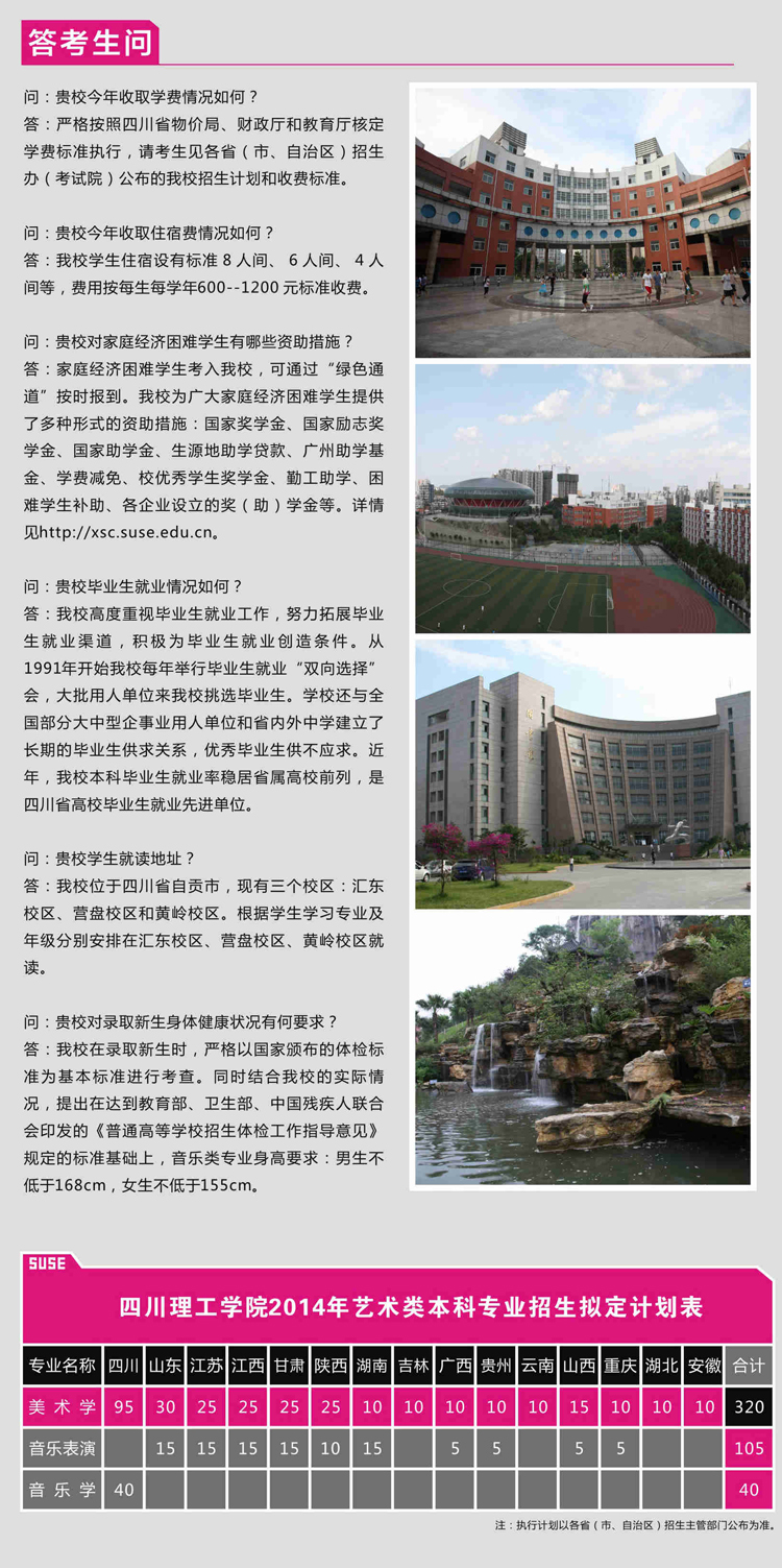 四川理工學院2014年藝術類招生簡章