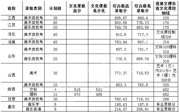 一、淮南師范學(xué)院2014年省外藝術(shù)類專業(yè)錄取分?jǐn)?shù)線