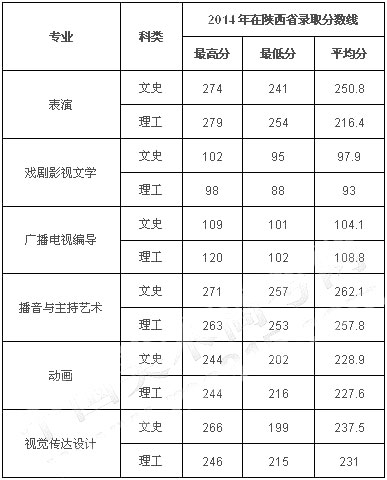 2014年西安外國語大學(xué)藝術(shù)類專業(yè)錄取分?jǐn)?shù)線