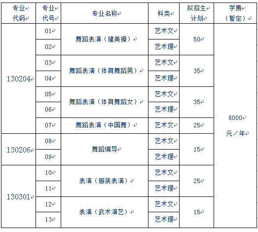 2015年山東體育學(xué)院藝術(shù)類舞蹈表演專業(yè)、舞蹈編導(dǎo)專業(yè)和表演專業(yè)繼續(xù)在山東省招生。