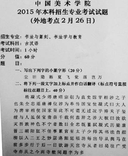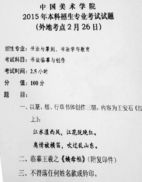 考點(diǎn)信息:省外考點(diǎn)2月26日書法類專業(yè)考試題目
