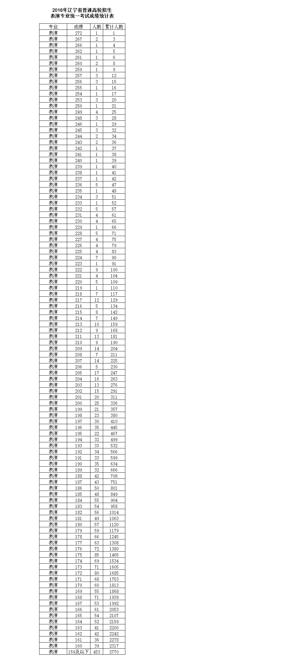 2016年遼寧省表演專業(yè)統(tǒng)考一分一段表