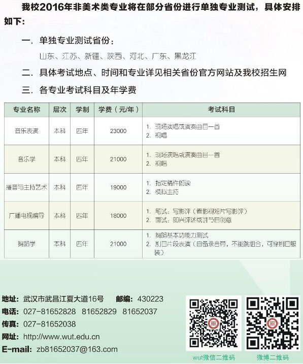 2016年武昌理工學(xué)院藝術(shù)類招生考試信息