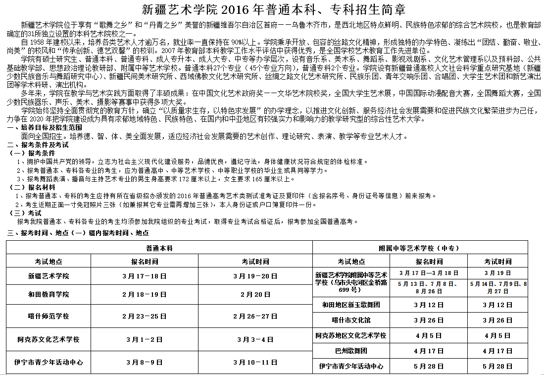 2016年新疆藝術(shù)學(xué)院普通本?普猩喺