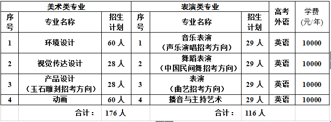 音樂(lè)表演、舞蹈表演、表演、播音與主持藝術(shù)、動(dòng)畫、視覺(jué)傳達(dá)設(shè)計(jì)、環(huán)境設(shè)計(jì)、產(chǎn)品設(shè)計(jì)等藝術(shù)類專業(yè),學(xué)校外語(yǔ)課程只安排英語(yǔ)教學(xué),其他語(yǔ)種考生慎報(bào)。