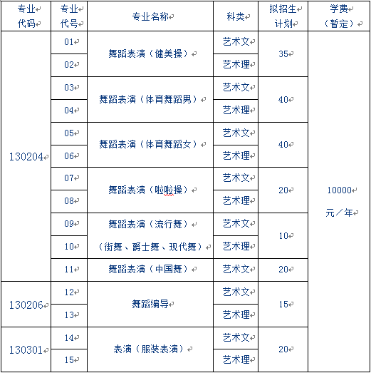 2016年山東體育學(xué)院藝術(shù)類舞蹈表演專業(yè)、舞蹈編導(dǎo)專業(yè)和表演專業(yè)繼續(xù)在山東省招生。