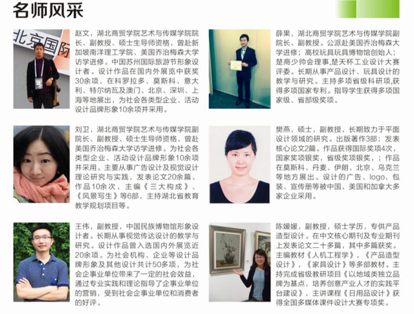 專業(yè)特色:本專業(yè)立足于湖北武漢及周邊地區(qū)的人文、傳統(tǒng)手工藝,進(jìn)一步弘揚(yáng)傳統(tǒng)民族手工藝文化,同時(shí)探討民族民俗特色紀(jì)念產(chǎn)品的設(shè)計(jì)與開(kāi)發(fā),打造基于傳統(tǒng)文化背景的現(xiàn)代的工藝美術(shù)與產(chǎn)品設(shè)計(jì)。