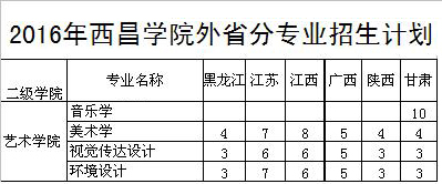 西昌學(xué)院2016年藝術(shù)類分省分專業(yè)招生計劃