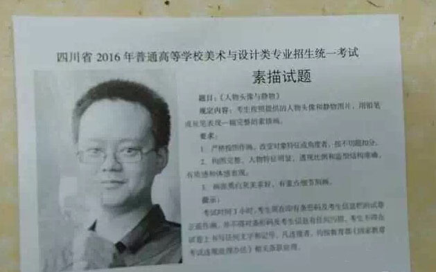2016四川美術(shù)聯(lián)考素描考題為:人物頭像與靜物(一個男性頭像照片,正面,戴眼鏡,左手舉一個透明高腳杯,如圖)
