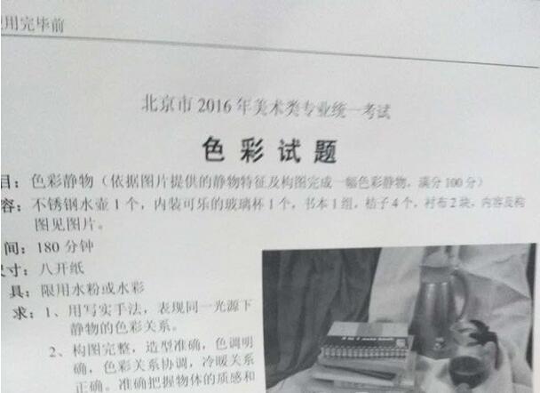 色彩考試題目:色彩靜物(依據(jù)圖片提供的靜物特征及構(gòu)圖完成一幅色彩靜物,滿分100分)