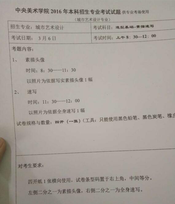 中央美術(shù)學(xué)院2016年本科招生城市藝術(shù)設(shè)計?伎碱}