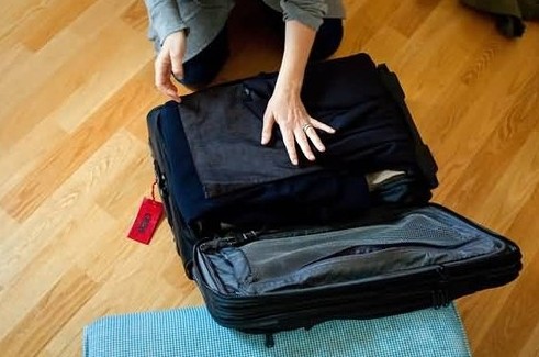 2.易褶的衣物放置中間,然后化妝品和手包還是在最上面。