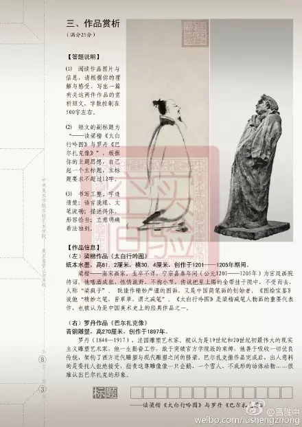總而言之,實(shí)驗(yàn)藝術(shù)的美術(shù)鑒賞科目著重考察同學(xué)們對(duì)美術(shù)史知識(shí)的掌握、相關(guān)作品的解讀以及個(gè)人的藝術(shù)觀點(diǎn),著重考察考生的個(gè)人文化素質(zhì)和理論修養(yǎng),而絕不是單純的對(duì)知識(shí)點(diǎn)死記硬背?碱}靈活,問(wèn)法多變就是其最明顯的作證。值得一提的是,在今年美術(shù)鑒賞科目之前,北京實(shí)驗(yàn)學(xué)堂的教研組針對(duì)此次考試進(jìn)行了出題思路預(yù)判和押題,將今年的主觀類型題目即鑒賞題和論述題全部壓中,使得實(shí)驗(yàn)學(xué)堂考生在考前有針對(duì)性的進(jìn)行了點(diǎn)穴式準(zhǔn)備。