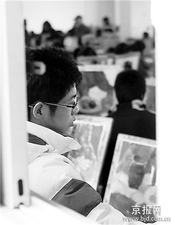 據(jù)陳南介紹,在這些美術(shù)專業(yè) 藝術(shù)類考生中,中央美院考試是他們心中最高級別的專業(yè)院?荚囍,任何細(xì)節(jié)都不敢疏忽。那一年凌 晨2時,考生、考生家長們就來到學(xué)校門口排隊等號,“前300號的學(xué)生可以被分配在有‘天光’的教室中 考試,更有利于考生作造型、考色彩。考試需要占據(jù)天時地利!
