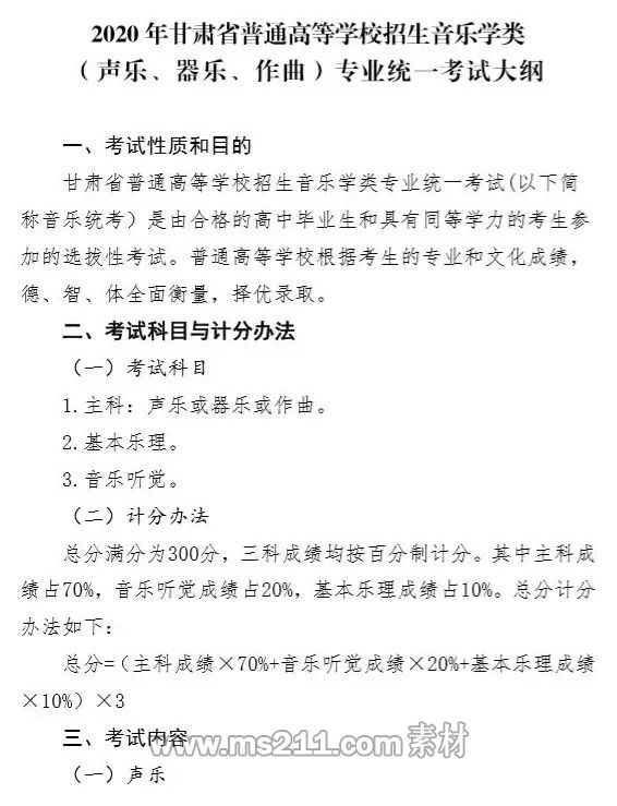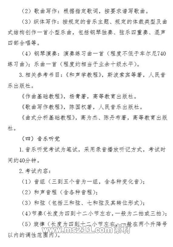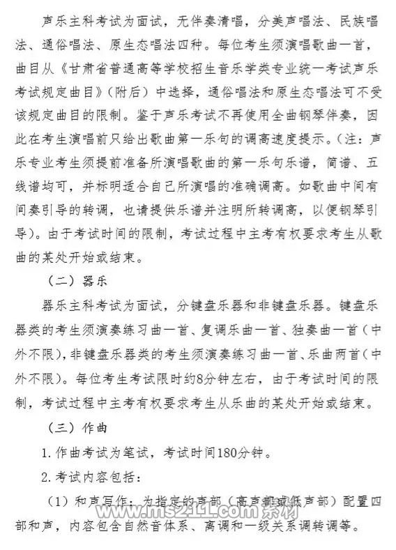 2016年江蘇音樂類專業(yè)統(tǒng)考考試說明