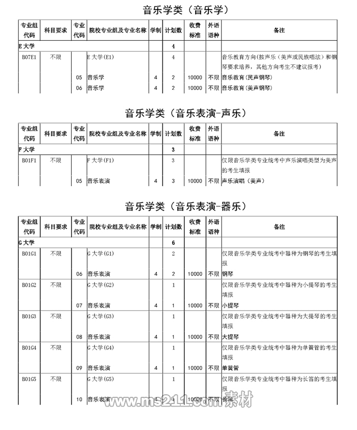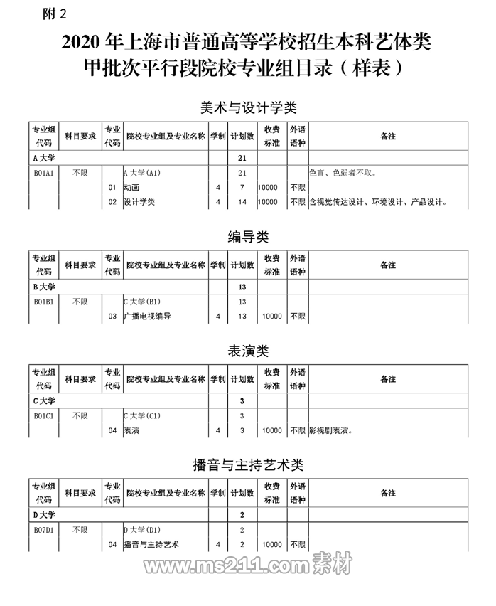 2020年上海市普通高等學(xué)校招生本科藝體類甲批次平行段院校專業(yè)組目錄(樣表)