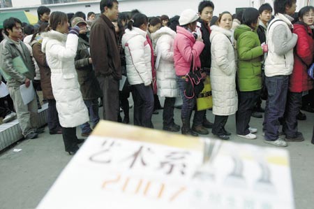 一方面擴招涉及到教學質(zhì)量的問題。事實上,這兩年老師們感覺教得越來越累,因為學生的專業(yè)水平與前幾年相距甚遠。很多學生是抱著繞開文化課的障礙來報考藝術專業(yè)的,其中能從高二開始學畫畫的已經(jīng)算不錯了,有些人就是高三最后幾個月突擊一下,F(xiàn)在這些“半路出家”者已經(jīng)占到我們招生總數(shù)的40%~50%。