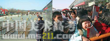 據(jù)山工藝報名現(xiàn)場副總指揮張振羽介紹,報名現(xiàn)場的保安半夜12:00就到位了,但沒有發(fā)現(xiàn)往年那樣半夜排隊報名的考生。清晨5點多,才有少許考生在報名入口處等候。為了減少考生等待時間,原定上午8:00開始的報名提前了一個小時。