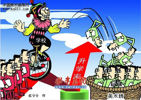 湖北省當(dāng)陽(yáng)二高為高考升學(xué)率做準(zhǔn)備,將考試成績(jī)?cè)?00分以下的50余名學(xué)生,“一刀切”地轉(zhuǎn)入到了美術(shù)班。該校高二年級(jí)主任說(shuō),這樣分班是因?yàn)檫@些學(xué)生的成績(jī)太差了,進(jìn)了美術(shù)班,可能升學(xué)更有希望。(2月17日《楚天都市報(bào)》)