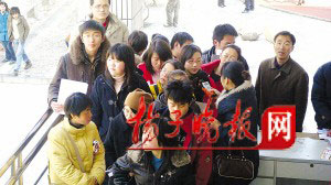 一萬(wàn)多人考試,最后只能錄取240人,這么殘酷的競(jìng)爭(zhēng)比例依然擋不住考生的報(bào)考熱情。昨天是清華美院08招生報(bào)名的第一天,南京寧海中學(xué)報(bào)名點(diǎn)排起了長(zhǎng)隊(duì),除了江蘇考生,還有來(lái)自安徽、山東等地的考生。緊隨其后,中央美術(shù)學(xué)院也將在3月4日?qǐng)?bào)名考試。作為美術(shù)類(lèi)頂尖院校的招考,記者在現(xiàn)場(chǎng)發(fā)現(xiàn)了一批“非清華央美不進(jìn)”的鐵桿粉絲,一年不中再考的考生比比皆是。據(jù)悉,清華美院的專(zhuān)業(yè)考試安排在3月1日和2日兩天。專(zhuān)業(yè)成績(jī)預(yù)計(jì)在4月中旬揭曉。