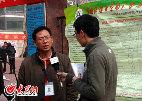 中國傳媒大學(xué)南廣學(xué)院招生辦主任李高強接受大眾網(wǎng)記者采訪。
