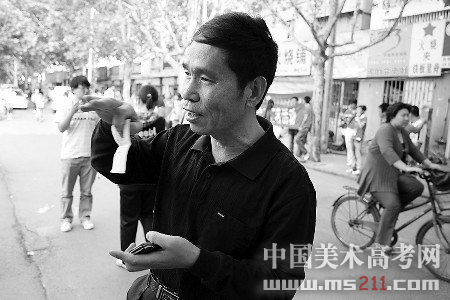 6日下午5時,記者在濰坊中學(xué)考點(diǎn)采訪看考場的學(xué)生,發(fā)現(xiàn)一位中年人從考點(diǎn)中出來,開始還以為他是替孩子看考場,一聊才知道他竟然是為自己看考場。