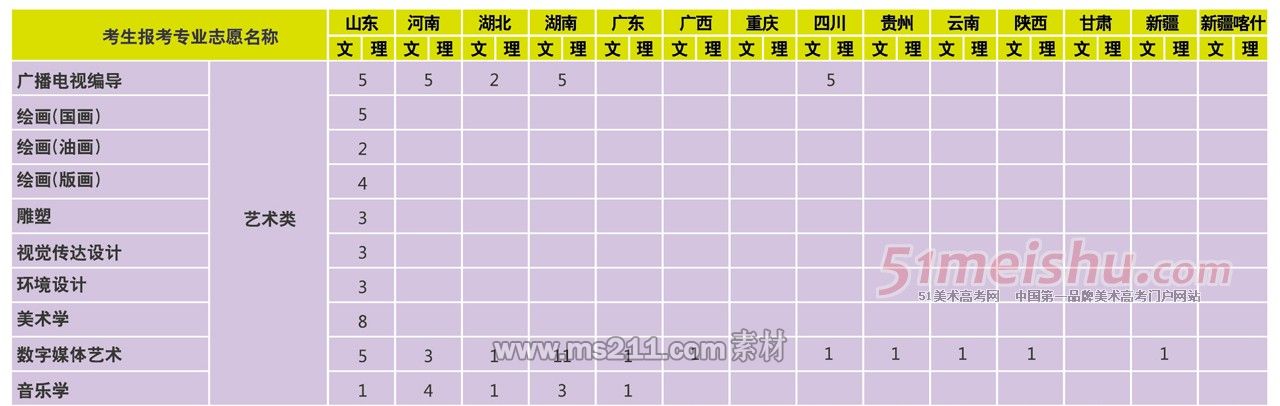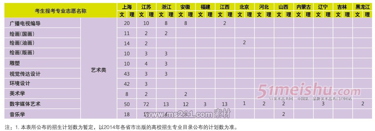 2014年上海大學(xué)省外藝術(shù)類分專業(yè)招生計劃