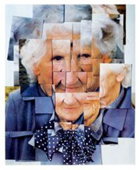 例舉英國(guó)藝術(shù)家霍克尼攝影拼貼《女人肖像》中,作者否定了“焦點(diǎn)透視”的立場(chǎng),為自己設(shè)立更多視點(diǎn),可以提示并能打開學(xué)生很多原有創(chuàng)作約束。