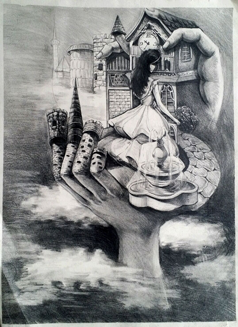 “聯(lián)想與幻象”這個(gè)課題設(shè)置,簡(jiǎn)單講是由被表現(xiàn)對(duì)象所引發(fā)的視覺聯(lián)想的表現(xiàn)。在肉眼與心眼,現(xiàn)實(shí)與理想,主觀與客觀等矛盾對(duì)立中,通過造型完成轉(zhuǎn)換與統(tǒng)一。