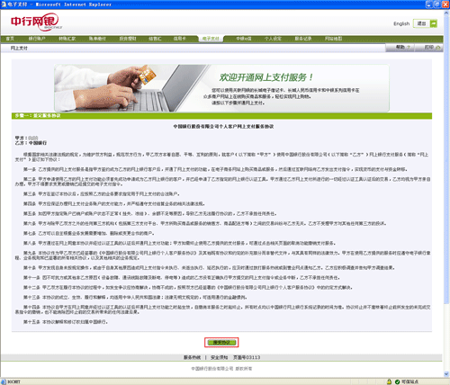 閱讀網(wǎng)上支付服務(wù)協(xié)議,如同意,點(diǎn)擊“接受協(xié)議”。