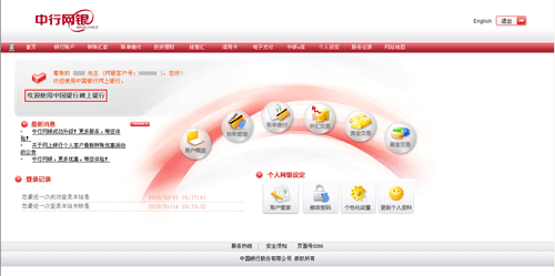 輸入新的用戶名和密碼,系統(tǒng)驗(yàn)證通過(guò)后,就可以進(jìn)入正常登錄的歡迎頁(yè)面(圖4)。此頁(yè)面會(huì)顯示歡迎信息,歡迎信息是提高您對(duì)假網(wǎng)站的辨別能力的一種簡(jiǎn)單有效的方法,您可以在“服務(wù)設(shè)定”下預(yù)留或修改您的歡迎信息。