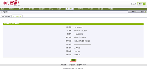 頁(yè)面提示已經(jīng)成功開(kāi)通網(wǎng)上支付服務(wù),點(diǎn)擊“確定”(圖8)。