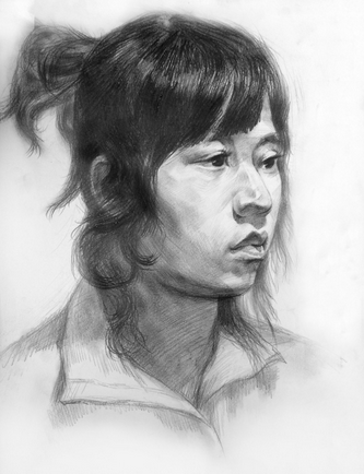 五、強調(diào)效果的完整。不管我們的試卷局部刻畫的多么深入具體,效果的完整是我們最終的目的,主次關(guān)系的加強與弱化,明暗關(guān)系的對比與統(tǒng)一,頭發(fā)與頭顱的依附關(guān)系,頭發(fā)與面部的協(xié)調(diào)關(guān)系,頭部與脖子的連帶關(guān)系等等都是我們最后需要加強的,當(dāng)然形象的生動傳神也是一副頭像默寫的關(guān)鍵。這也是試卷爭取高分的法寶。