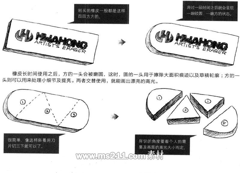 素描概括起稿階段,畫面經(jīng)常要調(diào)整,使用橡皮擦就可以擦去不對的線條。
