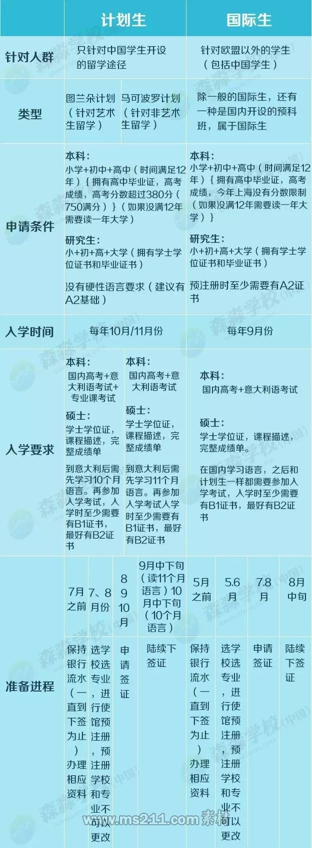 (注:無論是計劃生,或是國際生,在意大利獲得的文憑,均受到認可,相當(dāng)于在國內(nèi)獲得的文憑但是部分私立文憑除外。)