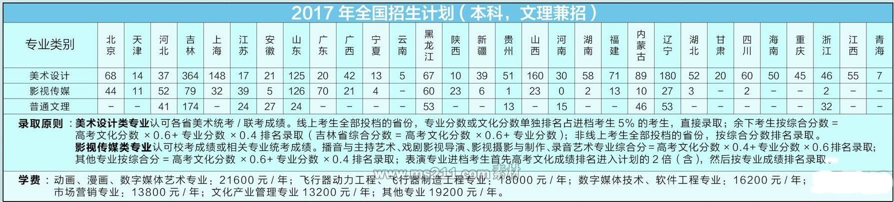 吉林動(dòng)畫學(xué)院2017年藝術(shù)類分省分專業(yè)招生計(jì)劃