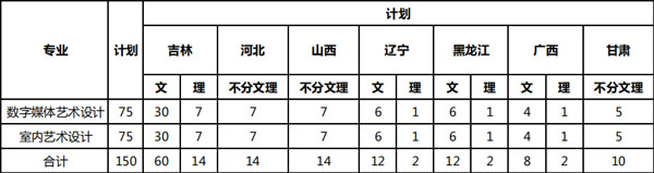 美術(shù)類??普猩鷮I(yè)含數(shù)字媒體藝術(shù)設(shè)計(jì)、室內(nèi)藝術(shù)設(shè)計(jì),面向吉林、河北、山西、遼寧、黑龍江、廣西、甘肅等省份招生。