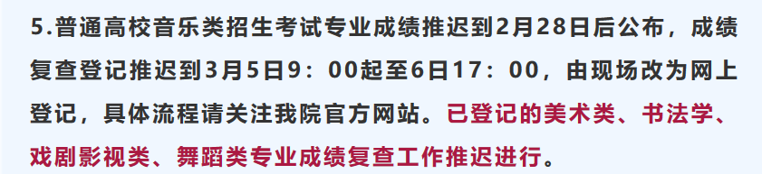 原因就是由于這次突發(fā)的肺炎疫情導(dǎo)致已登記的美術(shù)類、書法學(xué)、戲劇影視類、舞蹈類專業(yè)成績(jī)復(fù)查工作推遲進(jìn)行,只有待復(fù)查工作進(jìn)行完畢,準(zhǔn)確的聯(lián)考成績(jī)一分一段表才可能出來!!!