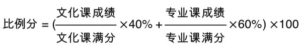 在實(shí)行平行志愿的省份,按照文化課投檔成績(jī)從高到低的順序擇優(yōu)錄取。在實(shí)行順序志愿的省份,按照比例分(四舍五入、保留小數(shù)點(diǎn)后兩位)從高到低的順序擇優(yōu)錄取,比例分滿分為100分,計(jì)算公式為: