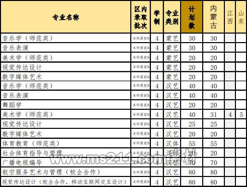 2.舞蹈學(xué)專業(yè):招生類別為漢授其他藝術(shù),專業(yè)考試成績(jī)合格,且文化課成績(jī)達(dá)到內(nèi)蒙古自治區(qū)漢授其他藝術(shù)批次本科錄取最低控制分?jǐn)?shù)線要求,按照復(fù)試專業(yè)考試成績(jī)由高到低擇優(yōu)錄取。