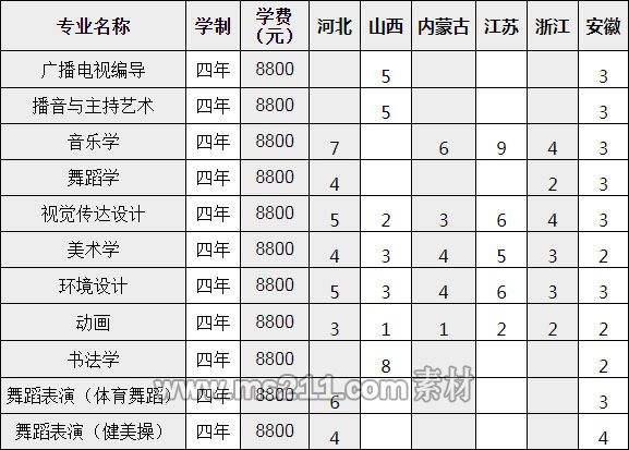 美術(shù)類(美術(shù)學(xué)、視覺傳達(dá)設(shè)計(jì)、環(huán)境設(shè)計(jì)、動(dòng)畫)所含四個(gè)專業(yè)計(jì)劃通用,按專業(yè)成績從高到低、兼顧考生個(gè)人專業(yè)志愿的原則錄取,專業(yè)成績相同情況下,文化優(yōu)先;若生源省(自治區(qū)、直轄市)按折算后的綜合成績投檔,則按綜合成績從高到低安排專業(yè),綜合成績相同情況下,專業(yè)優(yōu)先。
