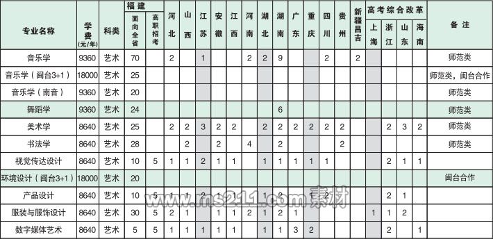 3.除福建省外的藝術(shù)類考生文化成績(jī)和專業(yè)統(tǒng)考成績(jī)均須達(dá)到所在省藝術(shù)類本科合格線,學(xué)校將按照考生專業(yè)成績(jī)從高到低擇優(yōu)錄取;以綜合分投檔的,則按綜合分從高到低擇優(yōu)錄取。